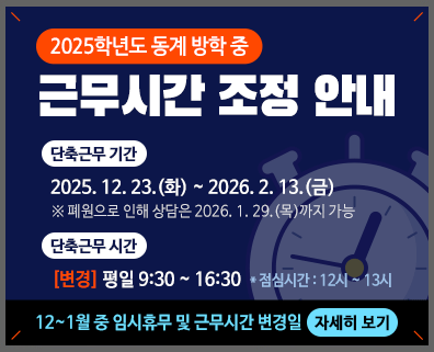 2025학년도 동계방학 중 근무시간 조정 및 임시휴무 안내